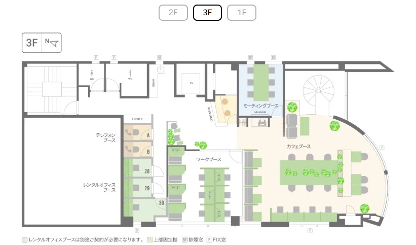 完全個室のレンタルオフィスやコワーキングスペース、会員登録不要のドロップイン利用も可能です。