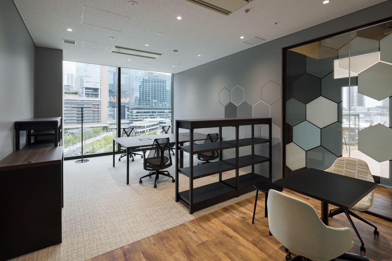 各区画には、机、椅子、収納棚、電話、インターネット環境等を完備しており、入居日からご利用いただけます。